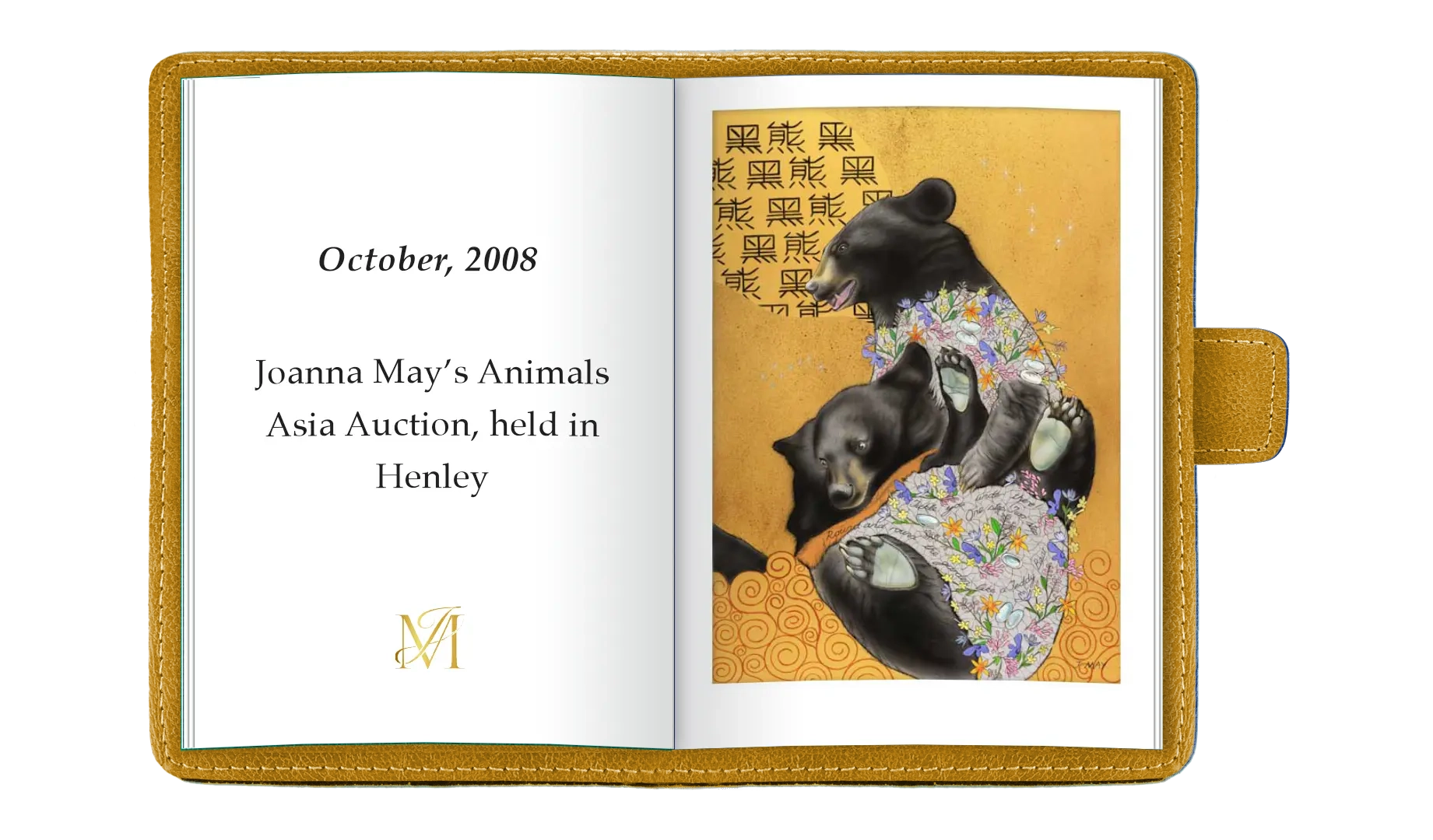 This event, in October 2013, was the launch of my series of Moon Bear paintings and auctioning prints and paintings to support the Animals Asia charity raising awareness and funds to help end bear farming for bile in China and Vietnam. The day was attended by Animals Asia founder and CEO Jill Robinson MBE with actress Rula Lenska and “Flog It” presenter Paul Martin generously donating their time to help me with this worthy cause.