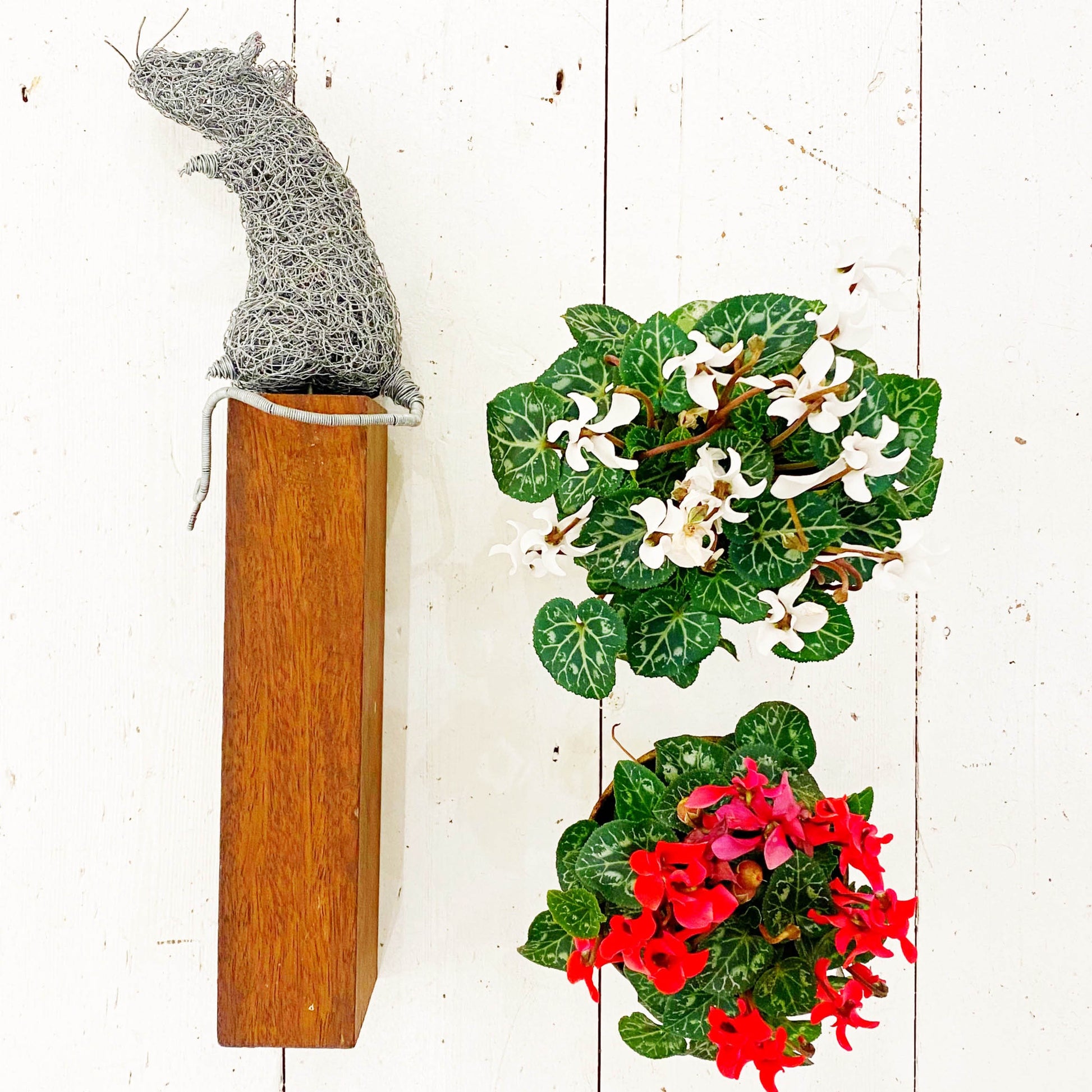 David is based in Dorset and has been a self-employed artist for a number of years; his work can be found in galleries nationwide. Although, originally trained in ceramics, David has been inspired by his interest in garden design and wildlife to work in galvanised woven wire to produce animal and bird sculptures of varying sizes. These include owls mounted on blocks of wood, hares captured mid-leap and wandering pheasants. The sculptures are suitable for display in the garden all year round, where the silvery grey colour of the wire softens the lines of the finished pieces and is contrasted naturally by foliage.
