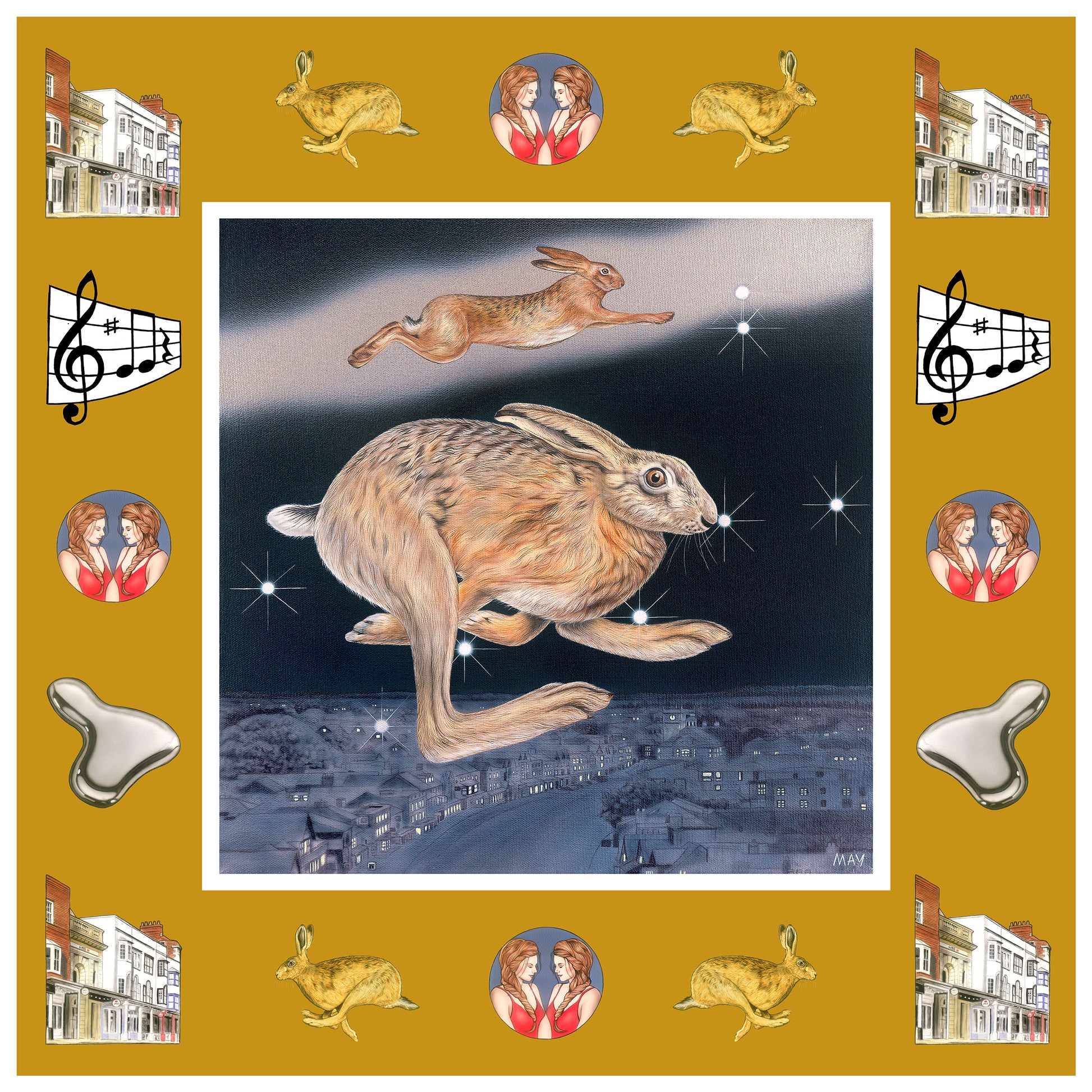 Gemini happens to be Joanna May’s star sign and the smaller hare in the sky is in the shape of her logo that appears on the back of her paintings.